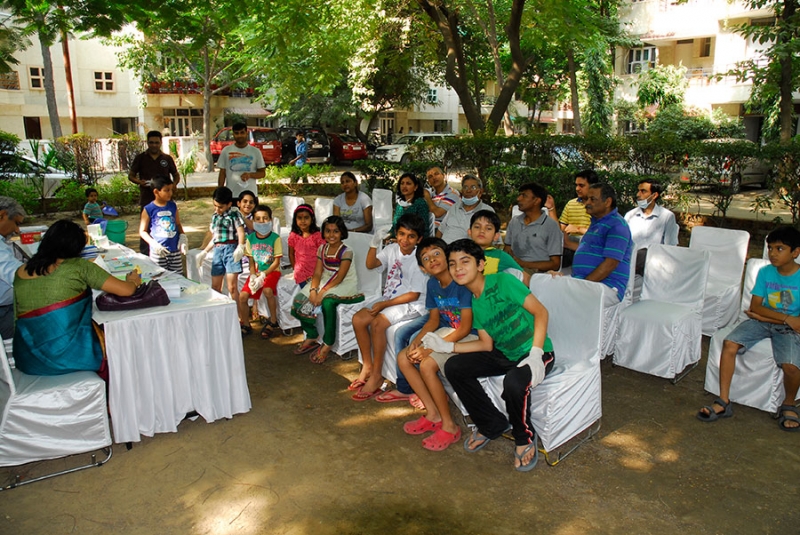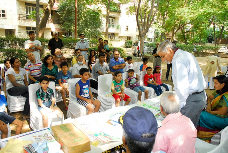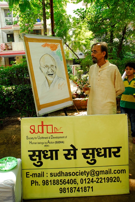 Organized , drawing , painting competitions,. on cleanliness and hygiene(Three best slogan on and three best painting given prize by the chief Guest.) 3) Constituted of Children’s’ Cabinets to supervise and monitor the cleanliness drive. 4) constituted of Adult ‘s cabinet to supervise and monitor the cleanliness driveď‚·.5) oath by residents on cleaniless taken .6) Sh. S. N. Roychudhary Artiest from south city 2 has drawn portrait of Mahtma Gandhi in the spot and filled it with the color. It was well appreciated by all.