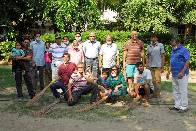 The students, parents, along with RWA Management Committees participated in this programme. Broom , Mask and gloves arrangement are being made to the residents by sudha society .The large number of children and parents participated in the Programme. The agenda of the programmewas as under--1)Residents participated to clean the roads and parks of A1 block from 8.30 AM onwards. Ladies also took part in the cleanliness drive in spite of pooja festival.