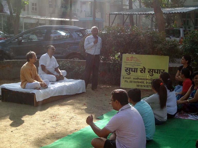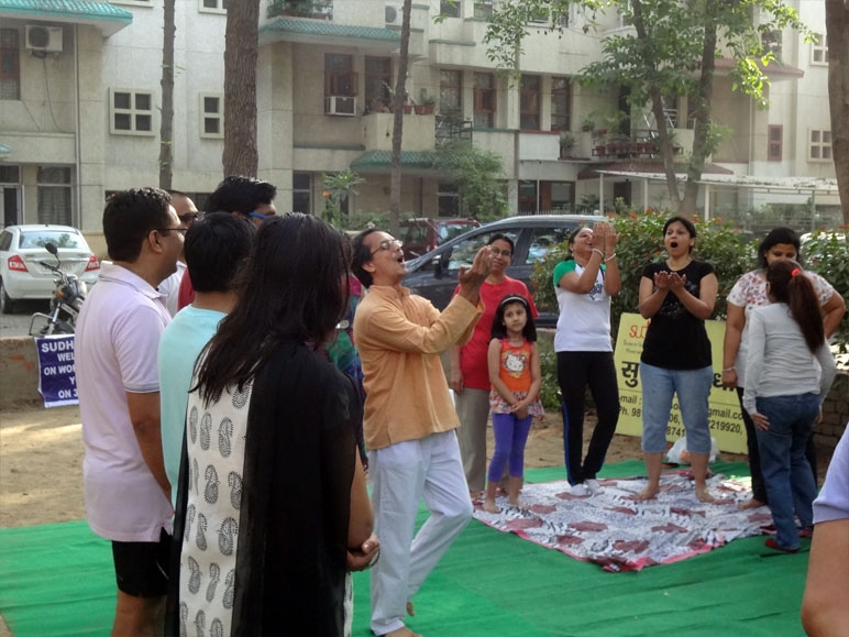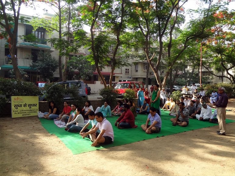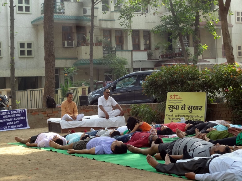 Sudha society regd( society for upliftment and Dev. of Human beings by action ) in association of Art of living Gurgaon observed the World laughter yoga day on 3rd May 2015 at south city 2 Gurgaon at 7 Am morning. More tha 70 people partcipated the event from south city 2, nirwana etc. .Sh. Pramod kumar & sh. Tushar faculty from Art of living Gurgaon atteneded the activity and conducted the laughter yoga and meditation..Children also attened the activity and best 3 paintings related to laughter were given the prizes by Mrs. Topashi Banerjee W/o Lt.General Gautam Banerjee( retd) , Mrs Nalini Saran w/o Maj. Gen. P k Saran ( retd)from sispal vihar Gurgaon , & sh. S.N. jha R/ o south city 2 Retd. professor of Lal bhadur shastri Sanskrit Vidhyapeeth Delhi .All the paricipants appreciated the activity and appealed to the president Sudha society to contiue the activity every sunday atleast for one hour in south city 2 Gurgaon.