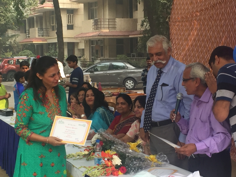 Shri. Pramod Kumar, treasurer and Mrs. Shashikiran Bhatnagar, member Sudha Society also attended the program. A stall was put up by children of A1 residents, where jute products made by rural women to promote environment friendly products were kept for sale.