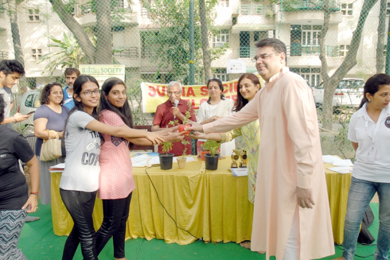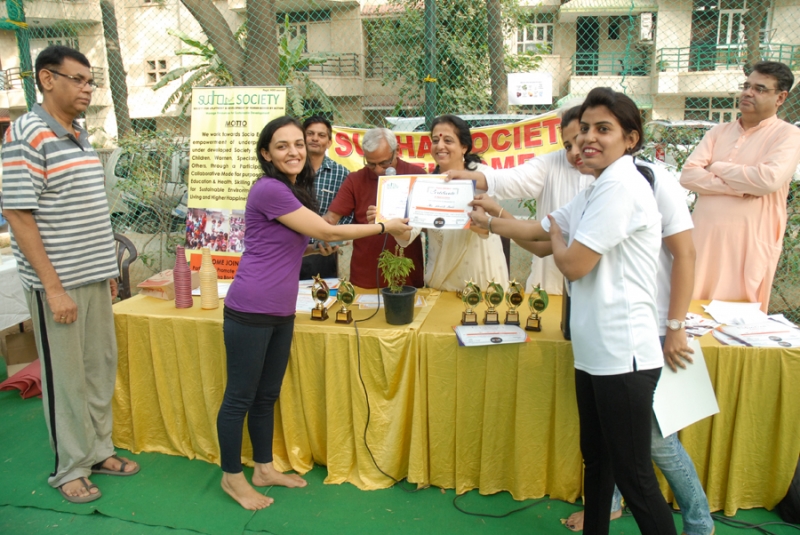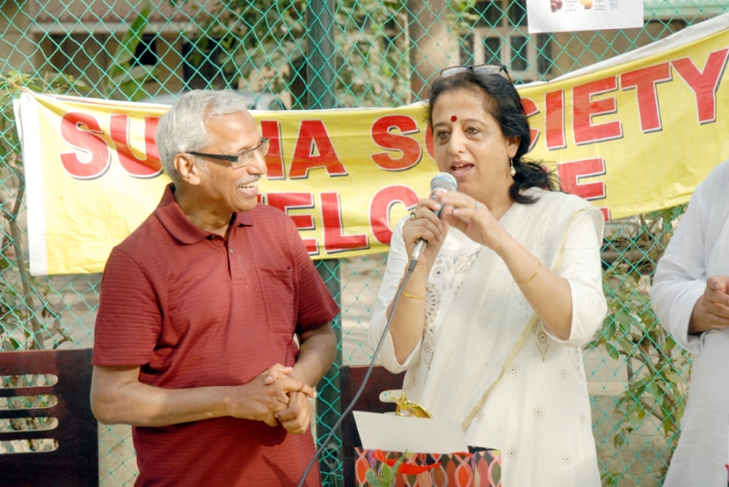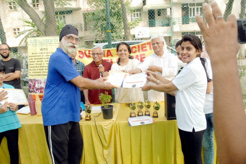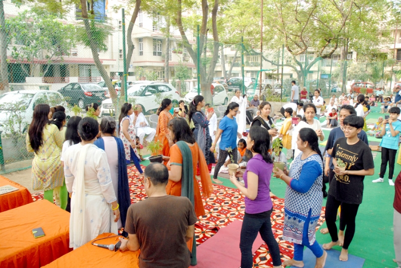 Many residents gathered to attend the event with full enthusiasm. Shri. S. N. Bhardwaj, President Of RWA, South City 2 was the chief guest and Ms. Gita Srinivasa, Head Of Ryan International School, sector 31 was the guest of honor.Shri. Anil Hanslas, the well known singer was a special guest. all Guests distributed certificate of appreciation to 31 residents. Yoga teachers Ms. Sweta Kohli, Ms. Kiran Sharma and Ms. Parul Pramodji conducted the yoga sessions. The program was concluded by a song by Ms. Kiran Sharma’s beautiful voice ( Hum ko Mann ki Shakti Dena).A huge number of yoga lovers joined the program.