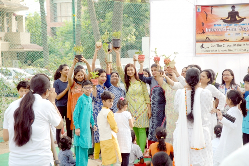 Patanjali Yoga Darshana is a later subset of the earlier Hiranyagarbha Yoga Darshana.The art of practicing yoga helps in controlling an individual’s mind,soul and body. It achieves a peaceful body and mind by physical and mental disciplines. Yoga helps us to cope with modern day stress too.International Yoga Day was celebrated on 20th June 2018, at A1 block, South City 2, Gurugram by Sudha Society with association of Art of Living, RWA South City 2 and Explore NCR .