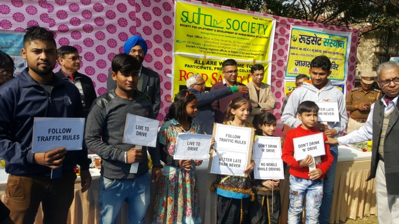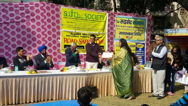 Sudha SOCIETY celebrated Road Safety Day with RWA South City 2, Rudset Institute, Art of Living, Vishwa Bhartiya Sanskar Trust, Road Riders(Arcadia) and Rockers Educare at A1 block South city 2 Gurugram