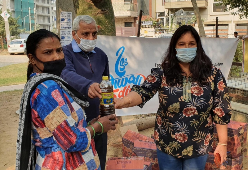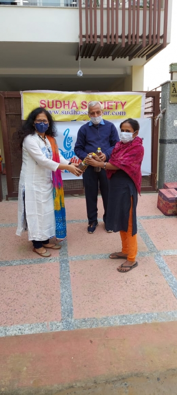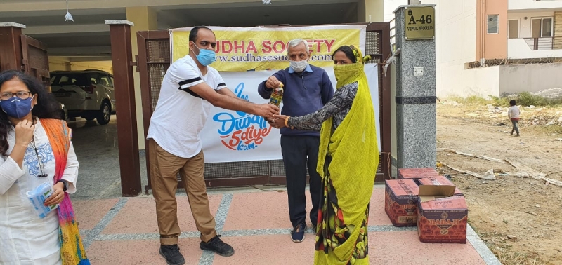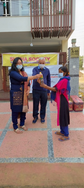 This Diwali SUDHA Society in collaboration with Helping hands, HP Studio came forward to distribute 121 mustard oil bottles in Fazilpur, Sohna on November 12, 2020, Thursday.