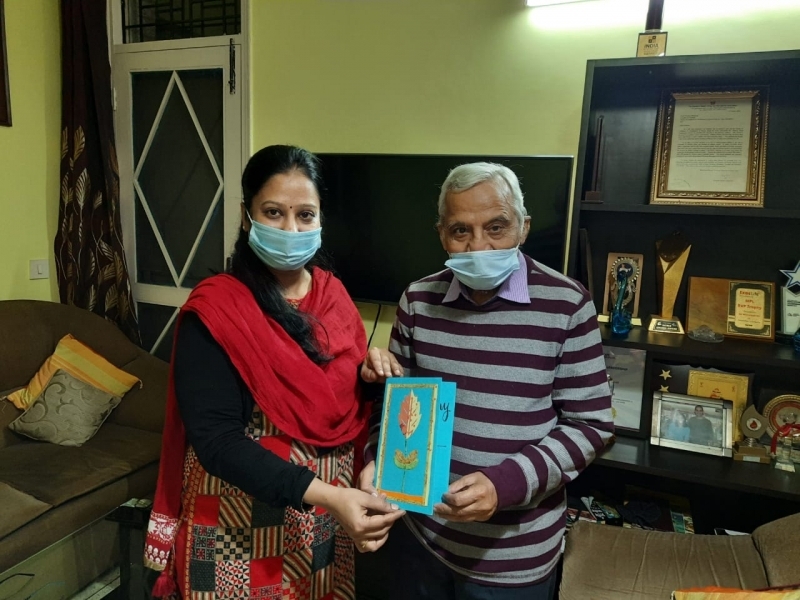 Mrs.Nidhi Agarwal Teacher, Artist and a resident of South city 2 gave a hand made card to Mr.G.K.Bhatnagar Chairman Sudha Society for his extraordinary efforts in making a difference in the Society through social service.