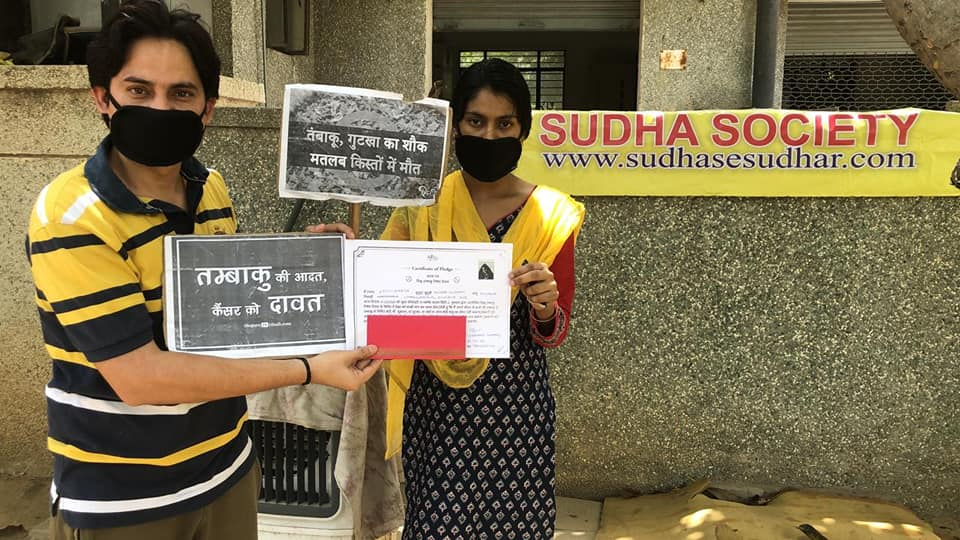 To encourage people to quit smoking and not consume any tobacco products Mr. G.K. Bhatnagar, President of Sudha society took initiative in this regard with the help of 31 Residents of A1 block, South City 2, Gurugram to motivate 101 low-income group people to take oath in the presence of them.
