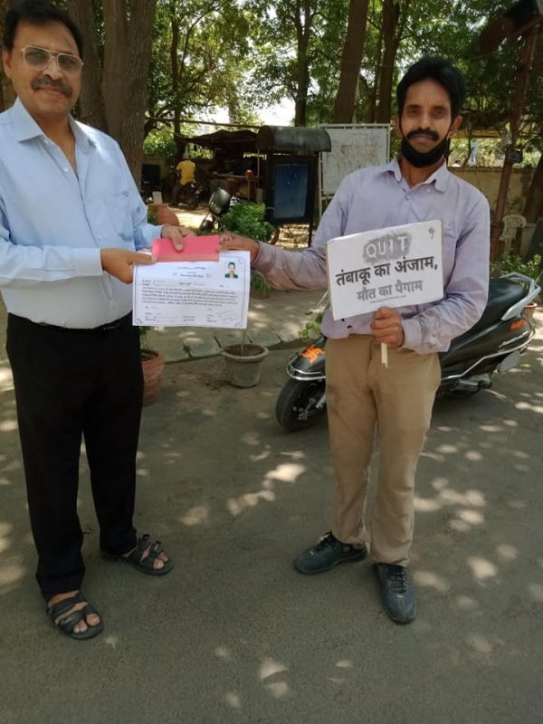 Mr. G.K Bhatnagar appealed each one regarding the health hazards of tobacco consumption as consuming tobacco can reduce the immunity level, which attracts a lot of diseases including the most dangerous coronavirus, from which entire nation is suffering. Also, everybody was also provided with five masks to safeguard themselves against covid -19 disease.