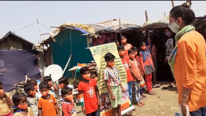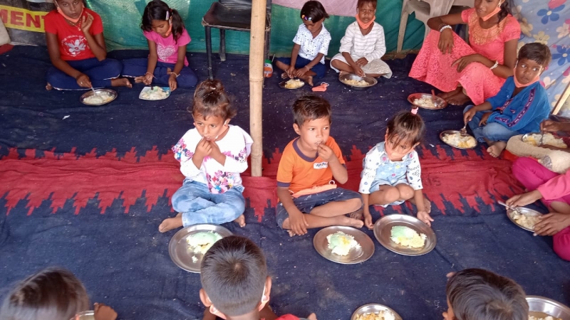 All the children were cheering loudly with the tricolor in their hands. "Long live Mother India". Volunteers like Deepti Goyal, Pooja, Anil Dutta, Minash Sarita, Durga, etc. encouraged the children to join the service of the nation by reading and writing. Gave information on the topic of how his health was good, how to survive from corona, how to avoid malnutrition. Saffron masks were distributed to the children. So that they can be independent of any infection or virus. After that distributed tricolor rice meal and food.