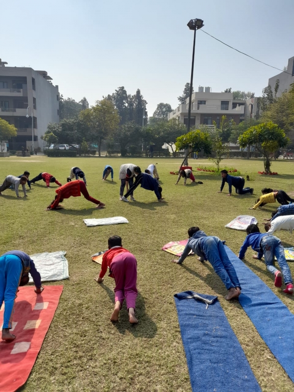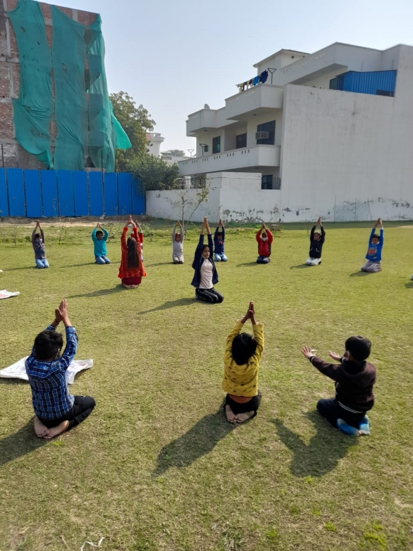 Mrs. Anu Sahdev ED Nutrition and Mrs. Geeta Parashar actively participated with the children. Dr. Kirti Bajpai President Sudha Society Foundation discussed the importance of Yoga especially breathing exercises with the children.