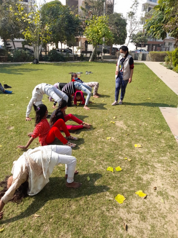 Yoga was introduced by Sudha Society Foundation to the underprivileged children at Malibu Town and Vipul World by Dr. Vipsa Gupta, Yoga Trainer and Physiotherapist on 7th February 2021. She introduced eight basic exercises to our children in play way method and introduced them with breathing exercises. She displayed and gave tips for a good posture while studying or doing their daily chores. Few children who had pains, she did their physical examination,guided them and resolved their queries too.