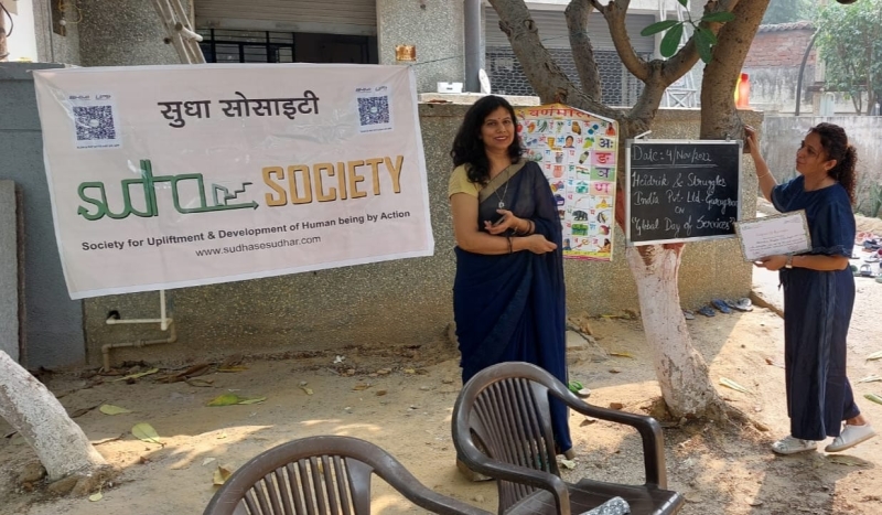 Global Day of Services is observed on 4th November 2022 by Sudha Society Foundation, open school @ A 1 block south city 2 Gurgaon, 79 Students & 7 Faculty members with other volunteers & office bearers of the school gladly welcomed the guests of honour Mr. Sachin Keshwan(CFO), Mr. Anurag Dang, Mr. Nitin Sharma, Mr. Nitin Saini, Ms. Shalinder Kaur, Mr. Yatin Makkar & Amit Marwah from M/s. Heidrick & Struggles Pvt Ltd, Gurgaon.