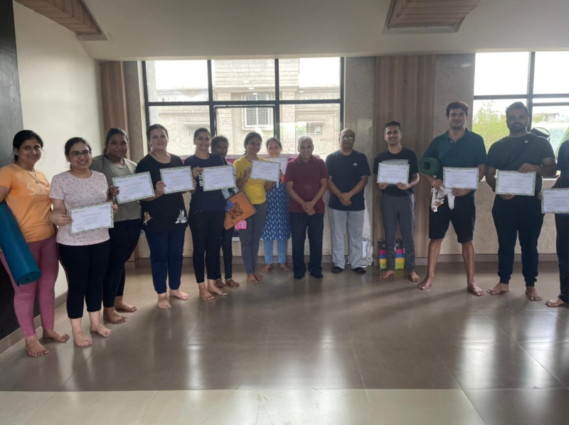 International Yoga Day celebrated at Sapphire Green office premises, Raipur on 21st June 2022 where Sh. N.N. Rao Acharya (Former Dy. Chief Personal Officer, IRPS. D/504 Sapphire Green) was Guest of Honour. All participants were honoured with participation certificate by Sudha Society Foundation (Society for upliftment and Development of Human Beings By Action).
