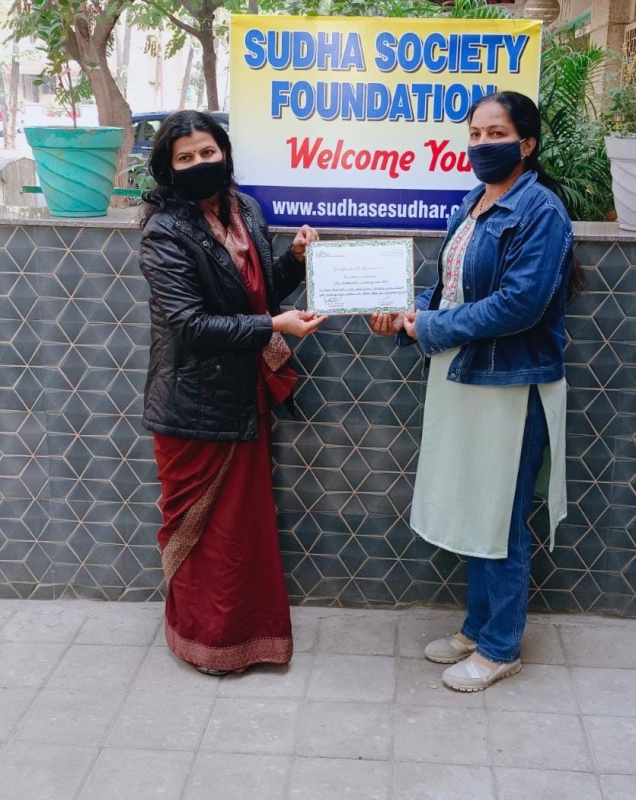 Certificates presented by Ms Pooja Bhardwaj- Joint Director Education at sudha society foundation, who is doing commendable job herself by teaching more than 100 children online everyday under Sudha Online Classes program for underprivileged children across pan India. On this occasion Ms . Ruchi Saxena President Sudha Society said Education is the equal right of every citizen and no situation can deprive them of this basic human right as per constitution of India.