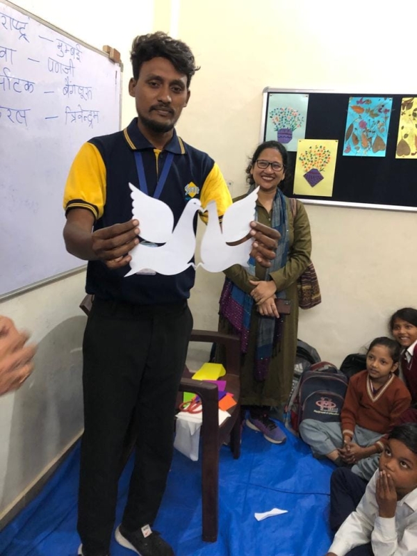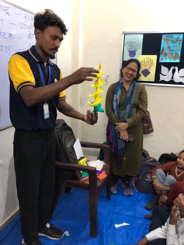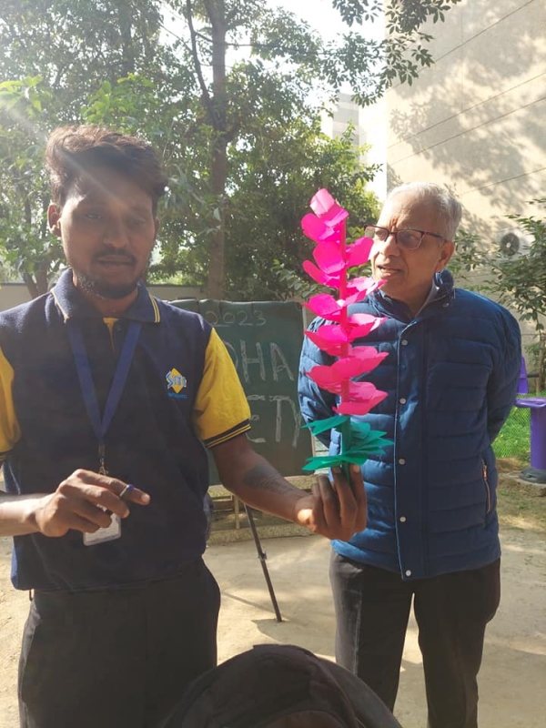 It is a matter of pride that today on 12th December 2023 at our Sudha Society Foundation School Gurgaon Mr. Manoj Rai came from Delhi, originally hailing from Pali Rajasthan to teach paper art and craft to our students who were very happy to learn the paper craft which taught them ways of using leftover/unused papers to make beautiful