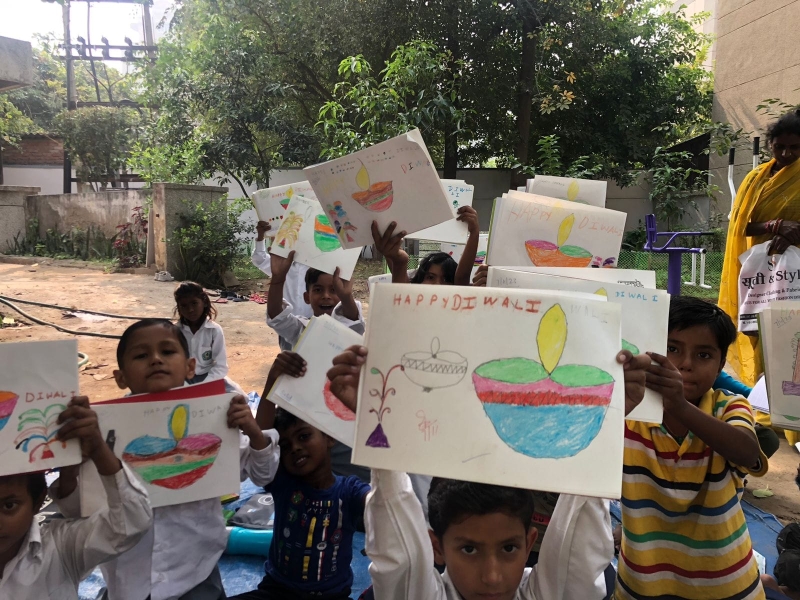 On the occasion of Diwali the festival of lights students of Sudha Open School in Gurgaon Students drew diwali lamps.