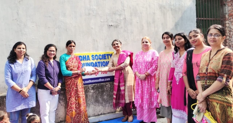 Mrs. Anita Sharma Retired Govt. officer is handing over cheque of Rs.8000/ on behalf of SUDHA Society Foundation to Mrs.Basanti (maid in sispal vihar Gurugram) W/o Ravi orawan today on 31/10/2023 on Sardar Patel Birth Anniversary.