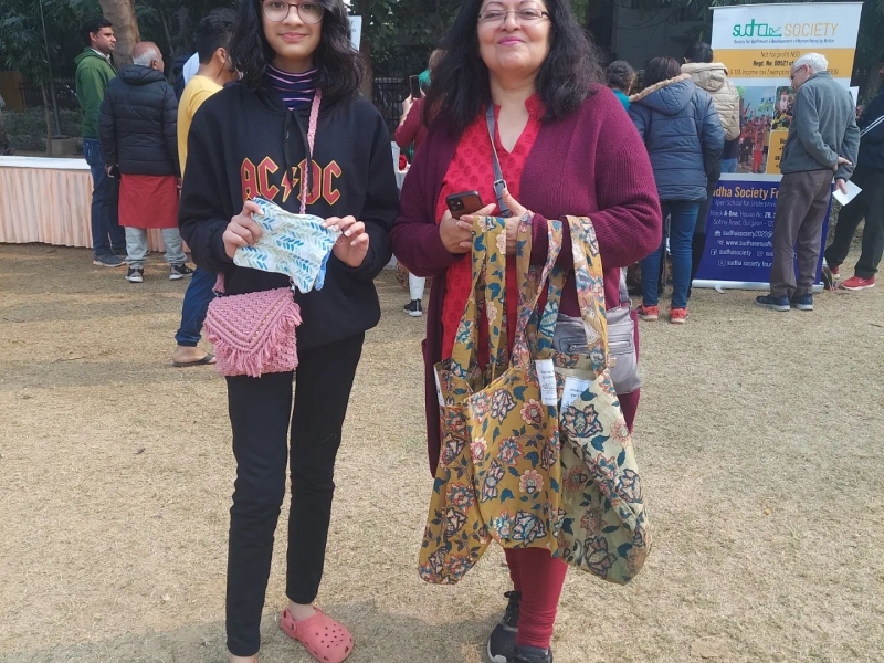 Everyone took cloth bags made by the *SKILL* *CENTRE* of *Sudha Society* . They took a pledge to use cloth bags n boycott plastic.