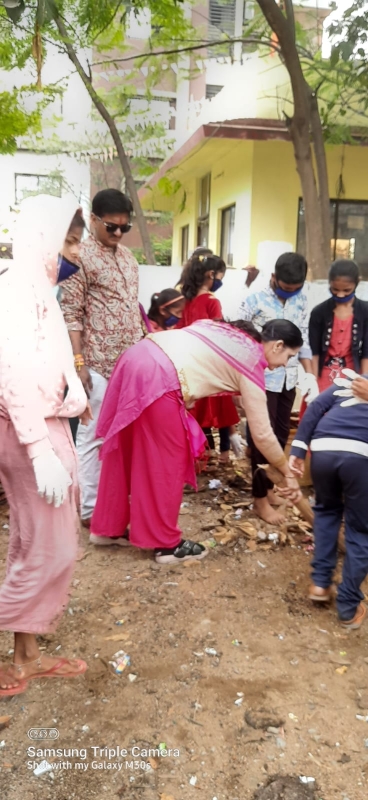 Kids participated in cleanliness drive along with all guests present near temples in Amaseoni.All kids were wearing mask and hand gloves while cleaning the area.Mask and hand cloves were provided to all by the society. Kids also presented cultural program and performed dance and songs in the program.Sh.Vikash Shukla addressed the gathering and emphasised values of education and culture in their daily life.He distributed sweets and biscuits to all kids present .Mrs.Reema Acharya volunteer of society provided woolen caps to all kids and advised them to wear the same during winter season and save from cold wave.