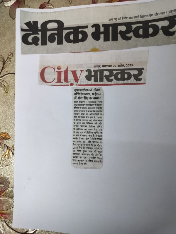 Honoured by Governor Chattishgarh