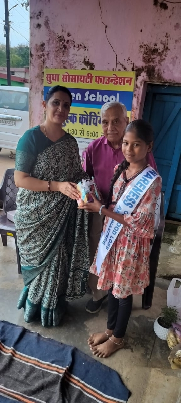 We're delighted to announce that Sudha Open School, Amaseoni, celebrated the "International Day of Awareness of Food Loss and Waste" on September 29, 2025. social worker, Mrs. Isha Shukla, was the chief guest. Students carried placards with impactful slogans like "Stop food waste, secure the future," "Respect food, don't waste it," and "Today's conservation, tomorrow's future." Mrs. Shukla addressed the students, emphasizing the importance of reducing food waste. The event was supported by Mrs. Bharti Maravi and Miss Khushi Yadav, with students presenting cultural performances.The chief Guest distributed prizes to all kids participating in the Cultural program. All kids were wearing sesh where it was written "Awareness of food loss and wastage ( by सुधा सोसाइटी )All kids were served refreshments by the society at the end.