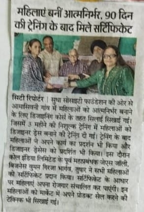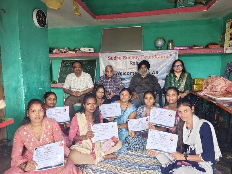 The valedictory function of 90 days women Tailoring and dress Designing course was conducted on 7/7/25 ( on world youth skill week from 7/7/25 to 15/7/25 ) at Amaseoni village, vidhan sabha Road Raipur under the banner of sudha society foundation where Sh. J S jolly former General Manager of coal india limited was chief Guest and Mrs. Girja Bhargava and Tushar Bhargava both Entrepreneurs were Guests of Honour.Sh. Gkbhatnagar chairman of sudha society foundation conducted the program.10 women of Amaseoni village successfully participated in the training program and were given certificates of completions. All the Guests spoke and appreciated the skill activity of the society.Open school Amaseoni kids also attended the program and presented a cultural program. Team Sudha society