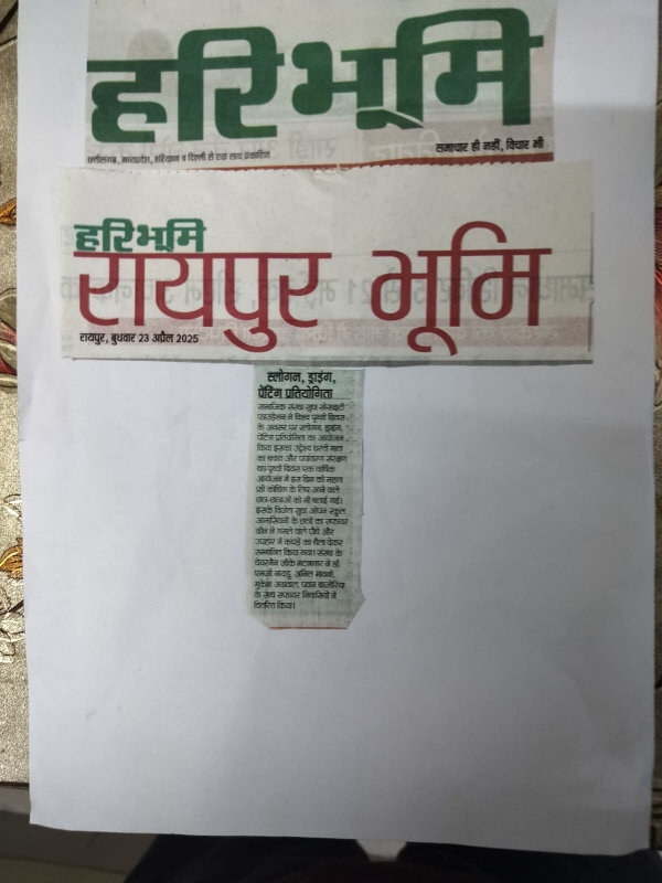 इस के विजेता सुधा ओपन स्कूल अमासिवनी ,के छात्रों और निवासी सफायर ग्रीन के छात्रों को सम्मानित किया।निम्नलिखित विजेताओं को गमले वाले पौधे और उपहार तथा कपड़े के थैले देकर सम्मानित किया गया। (1) कुमारी अक्षरा बरनवाल (2) केशव अग्रवाल (3) कुमारी पुष्टि गुप्ता (4) हार्दिक गुप्ता (5) दक्ष साहू (6) कुमारी संध्या साहू (7) महक साहू (8) कुमारी आराध्या श्रीवास्तव (9) पूजा साहू परितोष Dr. एमजी नायडू, अनिल Bhavnani सीनियर सिटीजन श्री मुकेश अग्रवाल सीनियर सिटीजन और श्री पवन बाजोरिया सफायर निवासियों ने वितरित किए. श्री जी के भटनागर चेयरमैन सुधा ने डॉक्टर गौरव कुमार सिंह जिला कलेक्टर रायपुर को एक कपड़े का थैला दे के पृथ्वी दिवस का शुभारंभ किया परितोष और पौधों के गमले का प्रायोजक अमर सुपरमार्ट और श्रीमती मंजू राठी( villa sapphire green Raipur )ने किया.