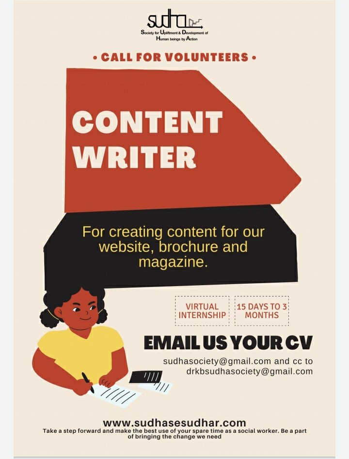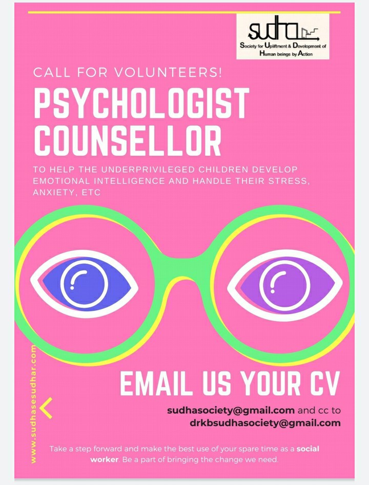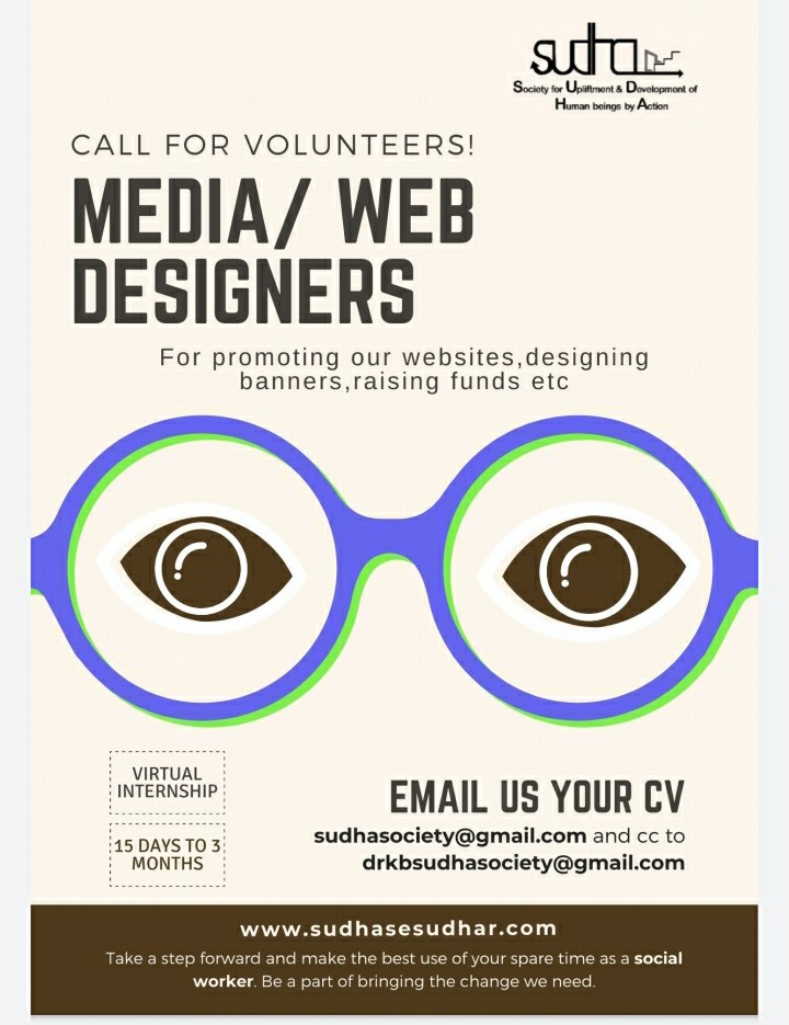 If you are interested to apply kindly send your CV at sudhasociety@gmail.com cc to drkbsudhasociety@gmail.com.Do mention you are applying for volunteer work or internship and your specific area of interest. Where you can contribute.